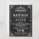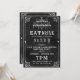 This design features a rough black stone background, a gothic ornate frame, and chandelier with fun typography. Perfect for your monster soiree. Easy to customise with your party information.