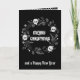 This Gothic Christmas Wreath With Skulls card features a lovely Christmas wreath decorated with playful skulls against a black background. Customise with your greeting on the front and add a special message inside.