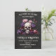 Dark and Moody Gothic Wedding invitations with Rembrandt inspired purple and pink and red roses. Features a skull surrounded by a floral bouquet on a lightly speckled black background. The back is a flying crow with a small rose bouquet. Perfect for a Halloween, day of the dead, "death do us part", night under the stars, cosmic, horoscope, goth or mystical magical night for any celebration. All wording can be changed. To make more changes go to Personalise this template. On the bottom you’ll see “Want to customise this design even further? Click on the EDIT using Design tool. From there you can change some of the fonts & some colours, move things around or delete what you need. A little midjourney generativecontent combined with hand drawn elements.