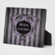 Elegant gothic home decor. A digital art ornate victorian architectural frame in purple and black on a purple and black grungy striped background. Shown here on a cute 5x7 inch plaque with easel.