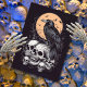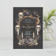 Embrace the haunting allure of our Gothic Elegance Halloween Party Invitation. This meticulously designed invite features a macabre yet sophisticated scene with skulls, ravens, and flickering candles set against a dark, intricate lace backdrop. The rich black, gold, and cream colour scheme adds an air of mystery and vintage charm, perfect for setting the stage for your Halloween festivities. Ideal for those who love the darker side of elegance, this invitation will captivate your guests and set the tone for a night of spooky sophistication.