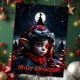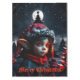 Gothic elf magic under the full moon. In the silent, snowy night, where the moon casts its silver light over the glittering landscape, stands a young Gothic elf, his pointed ears bobbing slightly in the gentle wind. His large, red eyes shine like ruby-red stars and seem to hold the secret of the night. In his hand he holds a burning candle, the flame of which is warm and lively, a small point of light in the frosty darkness.