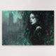 This jigsaw puzzle features a girl with long black hair wearing a black dress, with a misty castle in the background. It would make a beautiful gift for a jigsaw enthusiast.
