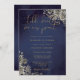 Gothic Floral Gold And Midnight Blue Wedding Invitation