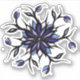 Gothic floral sticker with a cool weird mandala illustration - digitally coloured ink drawing of a strange flower with reptile monsters with sharp teeth in black, violet and blue colours.