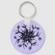 Gothic floral keychain with a cool weird mandala illustration - digitally coloured ink drawing of a strange flower with reptile monsters with sharp teeth in black, violet and blue colours.