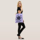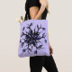 Gothic floral bag with a cool weird mandala illustration - digitally coloured ink drawing of a strange flower with reptile monsters with sharp teeth in black, violet and blue colours.