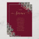 These elegant floral roses burgundy red and gold gothic wedding table numbers can be personalised with your guests' seating plan set in chic typography. The cards are printed on the front and back (double-sided). Designed by Thisisnotme©