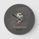 Gothic Floral Skull Butterflies Wedding Round Clock