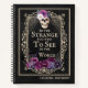 Gothic Floral Skull Funny Quote Custom Name Sketch Notebook. Custom name gothic sketch book with skull wearing flower crown surrounded by vintage baroque swirls border, flowers spider web and bats . funny inspirational quote " be the strange you wish to see in the world"