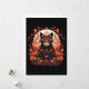 Elegant gothic fox in reddish orange with flowers on a black background with a folk art flair