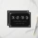 This gothic wedding RSVP card features a blackletter and serif lettering, in white over a black background. It lays out the title, whether the guest will accept or decline, and the date to respond by. There's also a line for you to hand-write the guest's ID number (which is helpful when keeping track of many RSVPs). Design also features a hand-drawn look border.