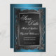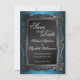 Wedding Save the Date announcements with a Gothic theme featuring a print of an ornate metallic style grey frame image on the front, with a blue to black gradient, and the wedding date over black. Great for Halloween, Gothic, or themed weddings.