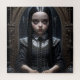 AI Art depicting a little gothic girl haunting Halloween puzzle.