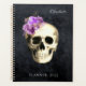 Stylish and Chic Gothic Floral Skull Personalised Planner. Design features a white skull accented with a beautiful purple roses on a black texture background. Personalise with your name and a title.