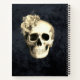 Stylish and Chic Gothic Floral Skull Personalized Notebook . Design features a white skull accented with a beautiful white roses on a black texture background. Personalize with your name and year