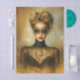 A striking woman stands poised in a richly detailed masquerade inspired portrait. She wears an ornate gold mask adorned with shimmering beadwork that accentuates her dramatic eyes. Her high neck black lace gown is intricately textured, blending seamlessly into the painterly background of warm gold, bronze, and muted blue tones. A large, elaborate gold bow sits atop her voluminous curls, echoing the mask’s ornate finish and adding a touch of whimsical elegance. The overall effect is luxurious, mysterious, and slightly gothic — a blend of masquerade glamour, fantasy aesthetics, and fine art portraiture. The soft brushstrokes and luminous highlights give the piece an oil painting feel……COLOR COMBINATIONS: Gold, bronze, beige, metallic, champagne, black, charcoal, teal, brown, honey……PERFECT FOR: Decoupage, furniture upcycling, mixed media, collage, art panels, shabby chic (elegant style), Gothic romance, dark academia, masquerade themes, fantasy crafts, and fashion inspired décor..........…... 🖤 NOTE 1. This design is available in two options: Left and Right. You can find them in the Collection shown below. If they don’t appear there, try searching for their unique identifiers: ER2L for the Left design and ER2R for the Right version….🖤 NOTE 2. The 18 lb tissue is a great choice if you like a little extra strength—it's easier to handle, resists tearing and allows for gentle repositioning. It’s also more opaque, making it perfect for darker surfaces. The 10 lb tissue is wonderfully lightweight and flexible giving you that smooth, blended finish. It’s ideal for layering on furniture or smaller projects so treat it gently and it will reward you with stunning results!.….🖤 NOTE 3. All items with this particular design share my unique identifying “Letter/s Number/s” label in the title for easy searching. …..🖤