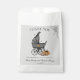 Personalised "Thank You" Halloween/Fall Baby Shower favour bag, featuring hand-drawn baby carriage, crow and pumpkins against an elegant light grey background. Simply click on "Personalise this template" to insert your own Thank You message, Name and Event Date.