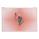 These pillowcases are red in the centre fading to pink on the edges with a Gothic half skeleton holding a single red rose on a stem with green leaves over his head.