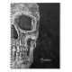 Gothic macabre black and white grunge texture print half skull head spiral notebook. Spooky, creepy, evil, sinister design. Custom typography. Cool, trendy, unique, modern, scary Halloween style. Image copyright Marg Seregelyi Photography.