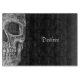 Gothic macabre cool grunge texture black and white printed half skull head rectangular glass cutting board. Spooky, creepy, evil, sinister kitchenware. Custom, trendy, unique, modern, scary Halloween style home decor. Customise your name. Image copyright Marg Seregelyi Photography.