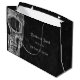 This Gothic wedding theme paper gift bag features a Macabre cool grunge texture black and white printed half skull head. Spooky, creepy, evil, sinister. Custom, trendy, unique, modern, scary Halloween style design. Image copyright Marg Seregelyi Photography.