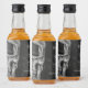 Gothic Halloween wedding theme mini liquor bottle labels. Macabre cool grunge texture black and white printed half skull head. Spooky, creepy, evil, sinister favours. Personalised Goth text, trendy, unique, modern, scary design. Image copyright Marg Seregelyi Photography.