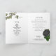 A Gothic Halloween script wedding design with black roses and hanging vines. A white Halloween design that uses black and dark botanical florals along with vintage script calligraphy typography. A stylish Gothic design ideal for Halloween wedding themes. A unique black roses wedding order of service program design. Matching wedding invitations and other stationery items are also available.