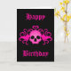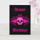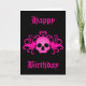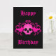Adorable Goth Birthday Card in black with a hot pink fanged skull with a heart on top and swirls printed on the front. If you don't like the text, it can be changed very easily.