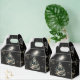 Gothic Haunted Witch Halloween Costume Party Favour Boxes. These favour boxes feature a dark, Gothic design with a misty black background. Ornate rustic golden accents frame the card, while the event title, "Haunted Halloween" is displayed in a eerie gold Gothic script. Subtle image of a spooky witch mixing her magical potion and a full moon enhance the eerie atmosphere. Easy to edit with your text on back.