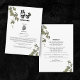 A Gothic Halloween script wedding design with black floral vines, skulls and heart. A white Halloween design that uses black and dark botanical greenery along with vintage script calligraphy typography. A stylish skulls Gothic design ideal for Halloween wedding themes. A unique black botanical, skulls and heart wedding itinerary program design. Matching wedding invitations and other stationery items are also available.