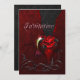 A black damask background with an overlay of deep red damsk, ripped to show the black. On the bottom of the rip a gothic style heart decorated with a rose weeping red tears. A red and cream hummingbird flying behind the heart, and black swirls decorating the bottom. A unique, unusual design - not just for an engagement party. Customise the text on the black damask back to fit your occasion.