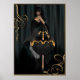 A pretty goth girl, holding a black heart decorated with gold bats, pierced by a fantasy aword. Set of with a sinister backdrop and grunge swirls in antique gold this makes a unique design for all that like the gothic and dark look!