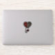 Gothic illustration featuring gothic jewellery heart in red and black with silver skull.