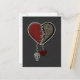 Gothic illustration featuring gothic jewellery heart in red and black with silver skull on a dark grey background.