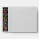 This greeting card envelope has vintage gothic art from an antique illuminated manuscript with colourful flowers and scrolling leaves on a black background on the front and is lined with black on the inside