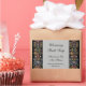 An editable soap, product or craft label with elegant script letters on light grey and vintage gothic art from an antique illuminated manuscript with colourful flowers and scrolling leaves on a black background.