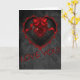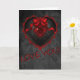 A dusky black lace background and a black lace heart with red lace frills, a large red jewel and big satin bow. A Romanti greeting card with a gothic touch.