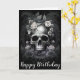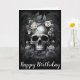 Within the realm of dark allure and gothic enchantment, a birthday card unveils its mysterious presence. At its heart, a moody gothic skull commands attention, surrounded by an arrangement of dark roses, their petals exuding an irresistible, velvety allure. Twisted thorns entwine with delicate leaves, casting captivating shadows against the backdrop.