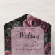 This invitation features gothic roses in mauve, grey and black. It is uniquely different and appropriate for formal and semi-formal affairs. The All-in-One wedding invitations are both beautiful and practical by combining the wedding invitation with an easy to remove perforated RSVP postcard. They are also quick and easy to prepare for mailing. Simply address the invitation, fold the back flap and seal with the included clear stickers. Once your guests receive the pre-addressed invitation they simply tear off the perforated RSVP card and drop it in the mail. The addition of the QR code allows your guests to easily access your wedding website for information including reception details and dinner choices!