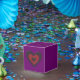 This awesome favour box features a beautiful digital image of a gothic black and red heart with ragged edges that shine with an ethereal light and appear to be melting. The background is purple. There is customisable text on the top lid so it can be personalised with the name of the recipient.