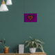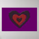 This poster features a beautiful digital image of a gothic black and red heart with ragged edges that shine with an ethereal light and appear to be melting. The background is purple.