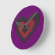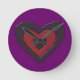 This awesome clock features a beautiful digital image of a gothic black and red heart with ragged edges that shine with an ethereal light and appear to be melting. The background is purple.