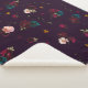 The design features pink roses, dark red peonies, geraniums and dahlias, petrol-coloured ranunculus, ivy and golden ivy leaves on a very dark purple.