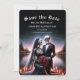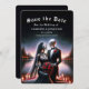 This romantic gothic wedding save the date announcement flat card features a skeleton couple dressed in black wedding attire with candles, red & black roses, and a lake in the background. Personalize with your wedding details]. Image generated with AI.