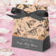 Personalised "Thank You" Halloween/Fall Baby Shower favour box, featuring hand-drawn baby carriages, black crows, witch hats, pumpkins, spiderwebs and tiny mushrooms against an elegant light orange background. Printed on both front and back. Simply click on "Personalise this template" to insert your own Event and Date.