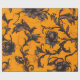Dark botanical vines and flowers in charcoal gray against a vibrant orange background with vintage crackle texture. This moody floral design combines gothic elegance with bold color for a unique, eye-catching pattern. The distressed texture adds aged character perfect for Halloween themes, autumn celebrations, or year-round gothic style.