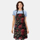 Gothic Pattern with Red Roses and Crows Apron