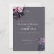 Invite your guests to your celebration with this elegant gothic floral wedding invitation, featuring deep plum and mauve blooms on a moody charcoal-grey background.