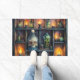 Greet guests with gothic charm using this potion shelf welcome mat. The skull and potion bottle design sets the perfect spooky tone for Halloween and gothic homes.